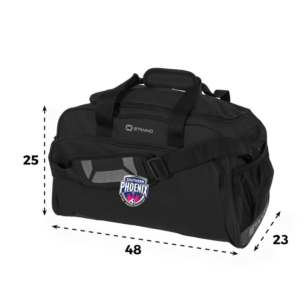 The Stanno San Remo bag is made of high-quality 600d polyester. The two-way zipper at the top provides access to the large, reinforced inner pocket. The San Remo bag features two extra pockets - one on the front and one inside. This bag is the smallest of a series of three bags, with dimensions of 25x48x23 cm (HxWxD).